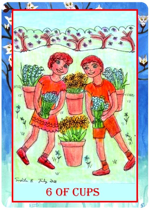 A plain border sounded a bit boring, so I looked through some of my earlier artwork to find a design that I could re-use. It was a revelation to see "The Darling Buds of February": so light-hearted and full of laughter. In contrast, how sombre my mood has been in recent years, naturally enough, considering all that has happened. But I found it a joy to rediscover some artwork from earlier days, and I hope some of that joy will be apparent in the design of this latest deck.