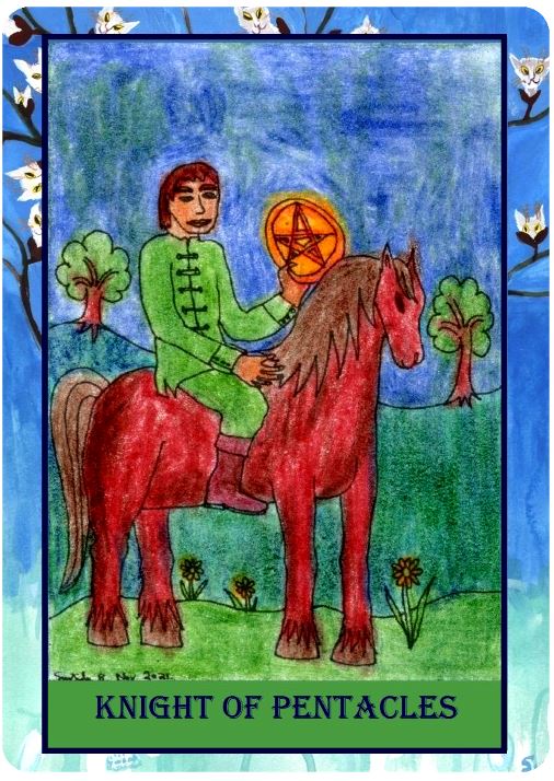 The Kitty Willows Tarot is loosely based on Rider-Waite-Smith, but I do try to avoid the sexism of many of the original images of the Minor Arcana in particular. My female characters tend to have a more active role than in RWS, and you will not find a blindfold anywhere in any of my decks.